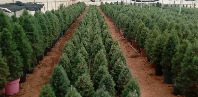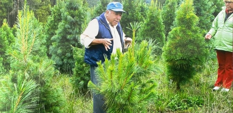 Inspección y selección: A finales del verano, los agricultores comienzan a evaluar cuáles árboles estarán listos para la temporada navideña de este año. Se etiquetan los mejores ejemplares para su cosecha en otoño.