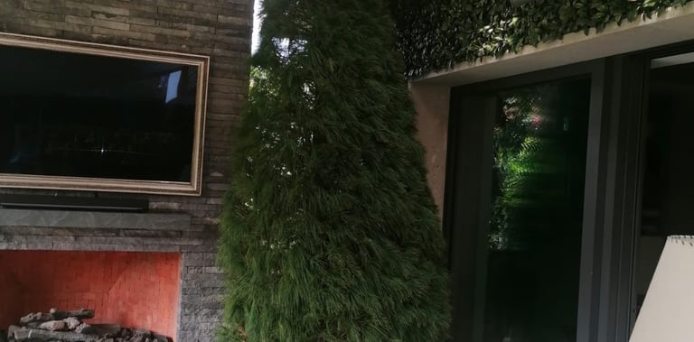 Cuidado en casa: Los pinos se mantienen frescos con riego constante, lo que les permite lucir verdes y evitar que se sequen rápidamente.